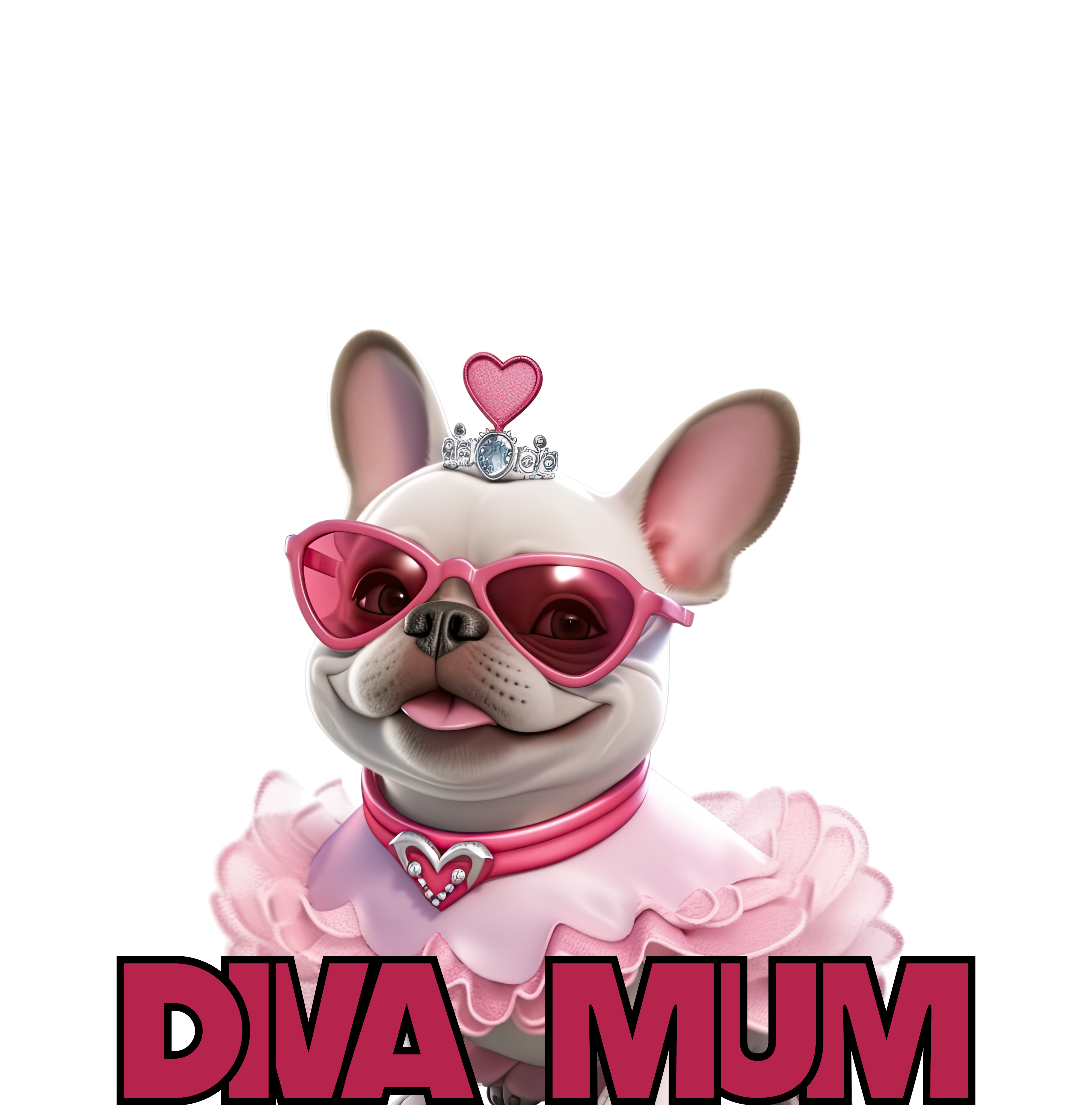 Introducing Diva Mum, the French Bulldog companion of a devoted glamour lover! Dressed to impress in the latest fashionable outfit, complete with stylish sunglasses, she exudes confidence and sophistication. With her impeccable sense of style and undeniable charm, Diva Mum captures the essence of glamour wherever she goes. Inspired by her owner's passion for all things fabulous, this design celebrates the bond between pets and their owners, united by a shared love for glamour and elegance. Let Diva Mum be your stylish confidante, adding a touch of glamour to your everyday life.