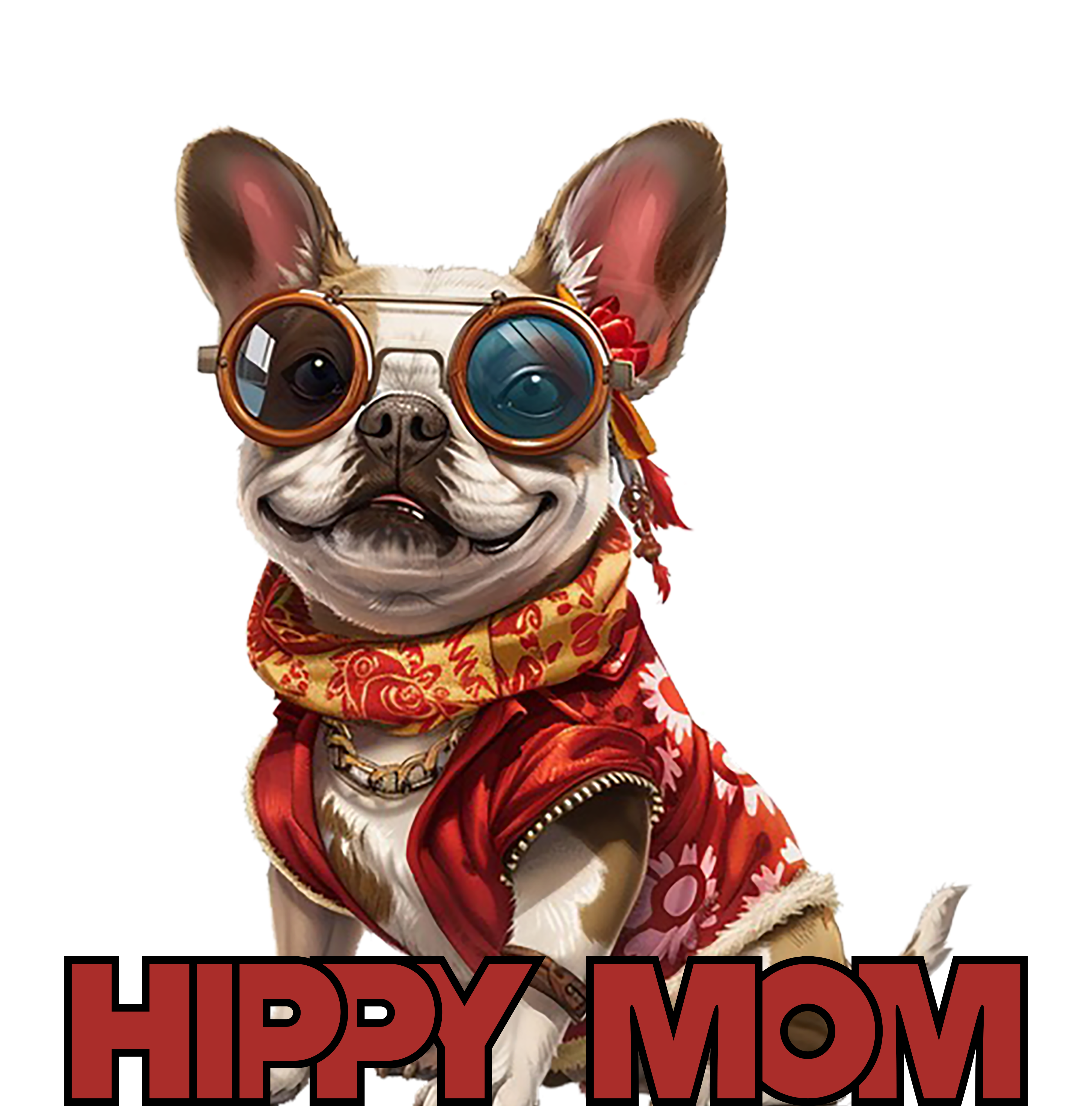 Introducing Hippy Mom, the French Bulldog companion of a devoted hippy style enthusiast! With her laid-back charm and groovy attire, she embodies the free-spirited essence of her owner's love for all things hippy. From her vibrant outfit to her carefree demeanor, Hippy Mom radiates positivity and individuality. Inspired by the bond between pets and their owners, this design celebrates the harmonious connection between a dog and their human, united by a shared appreciation for retro vibes and hippy flair. Let Hippy Mom be your faithful companion, spreading peace, love, and happiness wherever she goes.